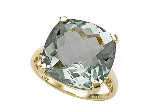 10.20 cttw Genuine Green, Genuine Green Amethyst Ring by Effy Collection® crafted in 14 kt Yellow Gold Dimensions: Height: 9.00 mm Width: 14.50 mm Length: 14.50 mm. 1 Stone 10.20 Carats Amethyst Color: Light Green Clarity: Clean. Metal weight may vary with finger size and metal choice. FREE LIFETIME WARRANTY, GIFT BAG AND GIFT CARD! Finejewelers Style Number: 520147.